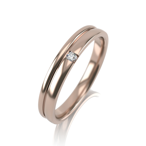 Обручальное кольцо из красного золота 585 пробы, украшенное бриллиантом.