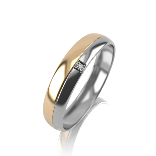 Обручальное кольцо, выполненное в сочетании белого и желтого золота 585 пробы, украшенное бриллиантом