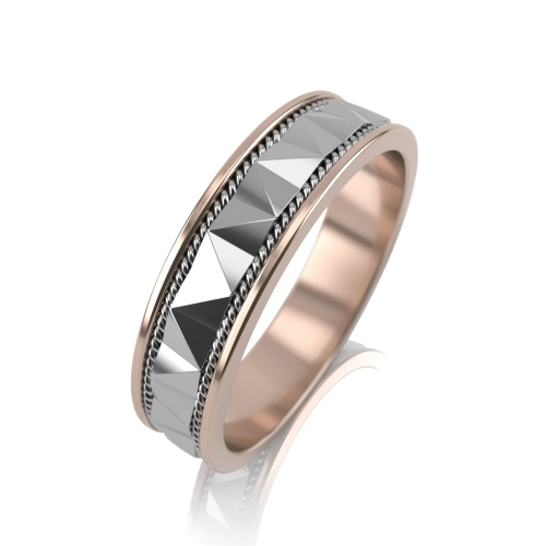 Оригинальное обручальное кольцо из двух цветов золота 585 пробы.