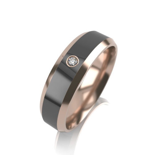 Стильное обручальное кольцо из красного золота 585 пробы, с керамикой черного цвета и бриллиантом.