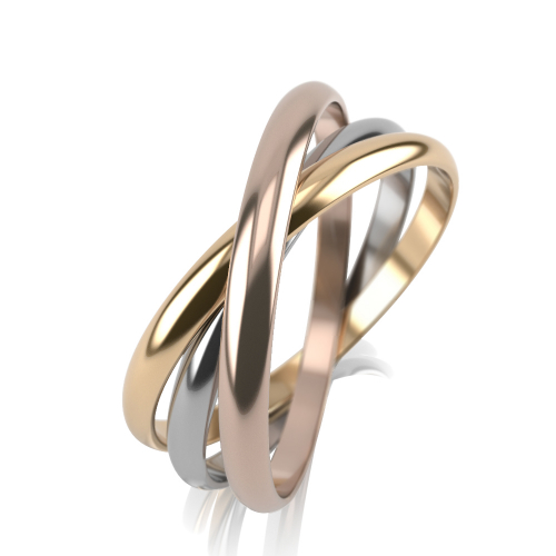 Роскошное кольцо, выполнено в сочетании красного, жёлтого и белого золота 585 пробы. Переплетение линий разных цветов золота смотрится очень эффектно.