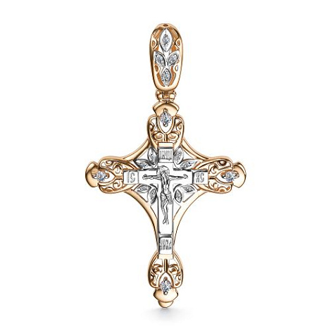 Православный крест выполнен в сочетании красного и белого золота 585 пробы