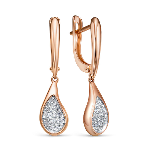 Элегантные и лаконичные, удлинённые серьги выполнены с сочетанием красного и белого золота 585 пробы, украшены дорожкой сверкающих фианитов