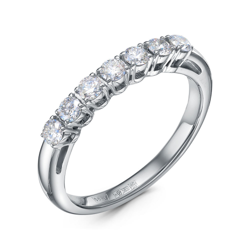 Кольцо, украшенное дорожкой сверкающих бриллиантов, выполнено из белого золота 585 пробы