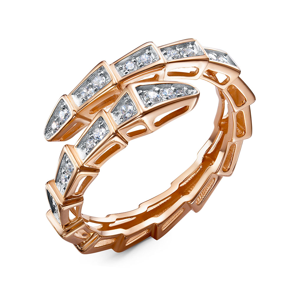 Изящное золотое кольцо, выполненное в виде змеи, украшенное фианитами, символизируя мудрость и вечную привлекательность