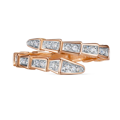 Изящное золотое кольцо, выполненное в виде змеи, украшенное фианитами, символизируя мудрость и вечную привлекательность. Это украшение привлекает внимание своим утончённым дизайном и становится выразительным элементом вашего образа. Представлено брендом ROSE GRACE. Вставки: 2 Фианит Кр 1,50; 22 Фианит Кр 1,25; 2 Фианит Кр 1,00 В комплект поставки входит: