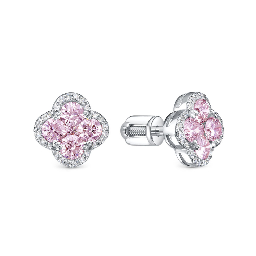 Серьги с розовыми сапфирами, красоту которых подчёркивает дорожка сверкающих бриллиантов, выполнены из белого золота 585 пробы
