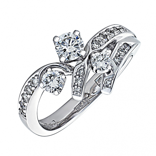 Кольцо из белого золота 750 пробы с бриллиантами необычного дизайна — это эксклюзивное украшение, которое сочетает в себе изысканную эстетику и современный стиль. Уникальный рисунок и расположение камней делают его настоящим произведением ювелирного искусства. Представлено брендом АРТ-МОДЕРН. Вставки: 3 бриллианта, круглой огранки, общим весом 0,40 карат с характеристиками 2/5А, 3/5А, 17 бриллиантов, круглой огранки, общим весом 0,16 карат с характеристиками 2/4А, 3/4А В комплект поставки входит: