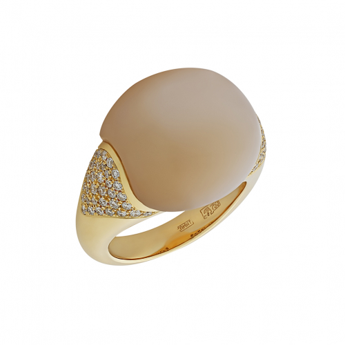 Уникальное кольцо из желтого золота 750 пробы с лунным камнем и бриллиантами привлекает внимание своей таинственной красотой