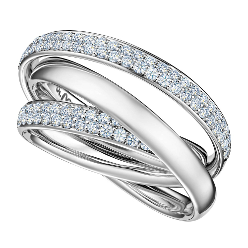 Изящное кольцо из белого золота 750 пробы украшено дорожкой сверкающих бриллиантов