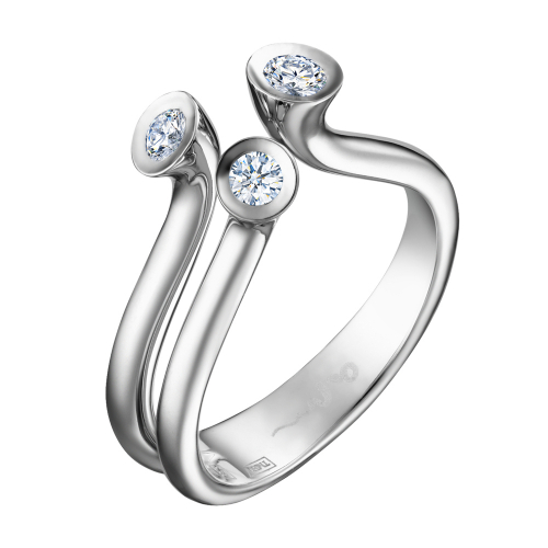 Кольцо из белого золота 750 пробы необычного дизайна с бриллиантами — это яркое выражение индивидуального стиля. Оригинальная форма и расположение камней придают украшению неповторимый характер, делая его заметным и запоминающимся аксессуаром. Представлено брендом АРТ-МОДЕРН. Вставки: 3 бриллианта, круглой огранки, общим весом 0,32 карата с характеристиками 3/5А В комплект поставки входит: