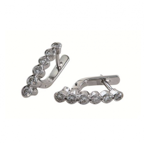 Серьги из белого золота 750 пробы украшены дорожкой сверкающих бриллиантов, что придает им изысканный и элегантный вид. Этот аксессуар станет великолепным дополнением к любому образу, добавляя ему нотку роскоши и блеска. Представлено брендом АРТ-МОДЕРН. Вставки: 12 бриллиантов, круглой огранки, общим весом 0,68 карат с характеристиками 3/5А В комплект поставки входит: