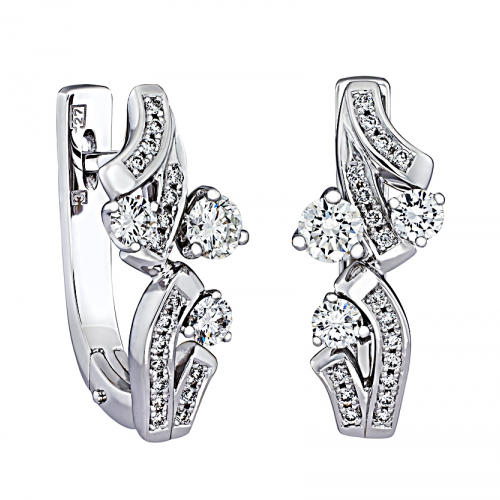 Серьги из белого золота 750 пробы украшены дорожкой сверкающих бриллиантов, что придает им изысканный и элегантный вид. Этот аксессуар станет великолепным дополнением к любому образу, добавляя ему нотку роскоши и блеска. Представлено брендом АРТ-МОДЕРН. Вставки: 6 бриллиантов, круглой огранки, общим весом 0,77 карат с характеристиками 2/5А, 3/5А, 36 бриллиантов, круглой огранки, общим весом 0,19 карат с характеристиками 3/5А В комплект поставки входит: