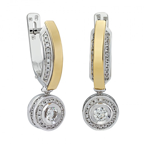 Эти серьги представляют собой изысканное сочетание белого и желтого золота 750 пробы, создающее уникальный контраст и придавая украшению особую выразительность