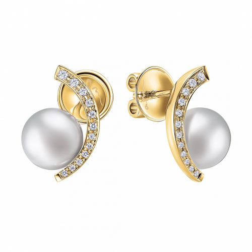 Пусеты из желтого золота 750 пробы с бриллиантами и жемчугом – это изысканные и элегантные украшения, сочетающие в себе классическую красоту и современный шик