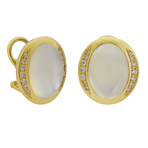 Серьги из желтого золота 750 пробы с лунным камнем и бриллиантами – это уникальные и загадочные украшения, обладающие особым очарованием