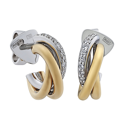 Серьги-пусеты из белого и желтого золота 750 пробы с бриллиантами – это элегантное и стильное украшение, которое сочетает в себе два оттенка золота, создавая интересный визуальный эффект