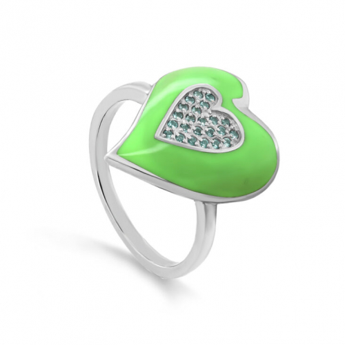 Кольцо с гранатитами, блеск которых подчёркивает яркая светоотражающая эмаль, выполнено из родированного серебра 925 пробы