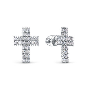 Серьги - пусеты в виде декоративных крестиков, украшенных фианитами, выполнены из родированного серебра 925 пробы