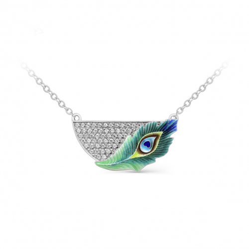 Колье цепочное с яркой и стильной подвесной частью, украшенной цветной горячей эмалью и россыпью сверкающих фианитов, выполнено из серебра 925 пробы. Изделие представлено брендом "KABAROVSKY". Средняя характеристика камней на артикул: 62 Фианит Кр 1,00; В комплект поставки входит: