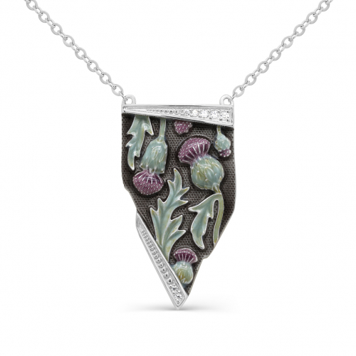 Стильное колье с подвесом выполнено из серебра 925 пробы с родиевым покрытием. Родий - драгоценный металл платиновой группы, который делает серебро устойчивым к повреждениям, не вызывает аллергии, не темнеет и дарит искрящийся блеск. Колье украшено горячей эмалью и сияющими фианитами.