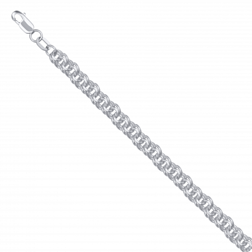 Цепь с надежным и прочным плетением "Гарибальди" выполнена из родированного серебра 925 пробы