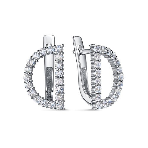 Стильные серьги выполнены из родированного серебра 925 пробы, украшены дорожками сверкающих фианитов , которые своими светопреломляющими свойствами могут сравниться лишь с бриллиантом