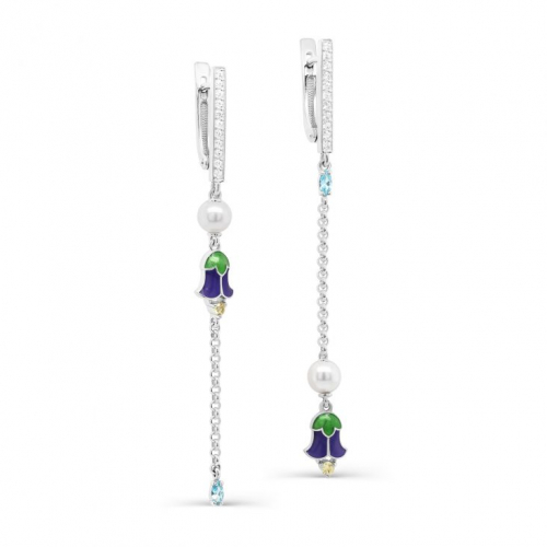 Серьги из серебра 925 пробы с жемчугом, фианитами и холодной эмалью от российского бренда Kabarovsky