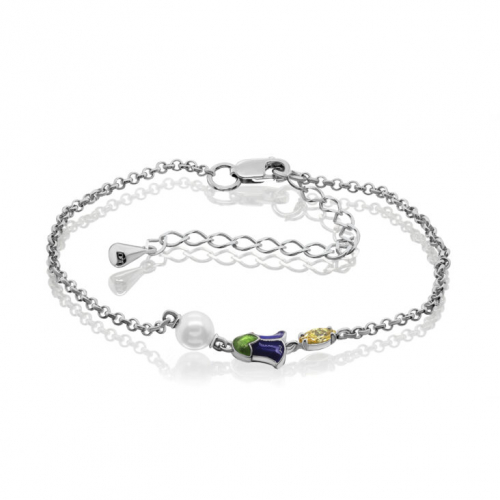 Браслет из серебра 925 пробы с жемчугом, фианитом и холодной эмалью от российского бренда Kabarovsky