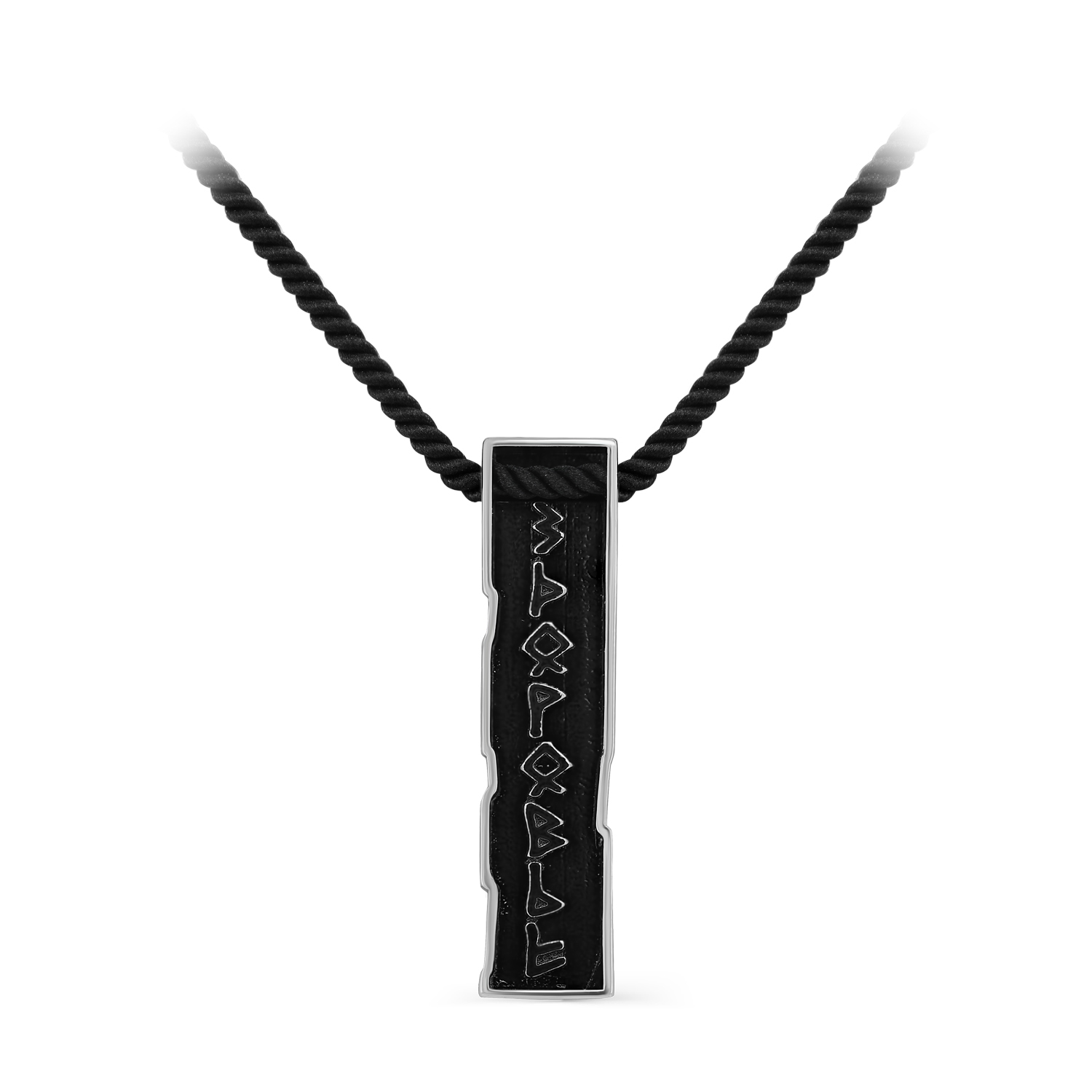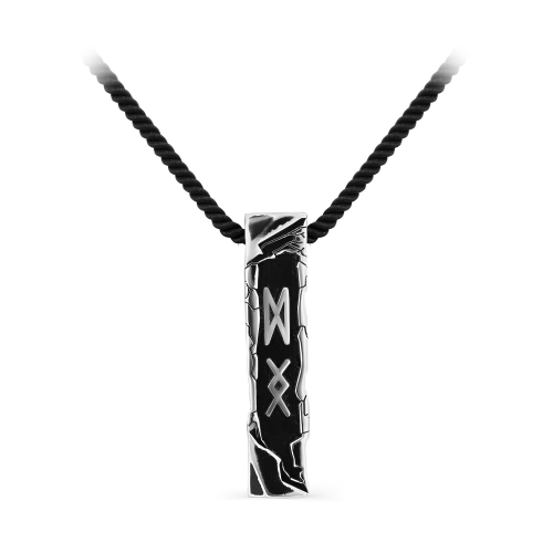 Колье на лавсановом чёрном шнуре с подвеской украшенной надписью "ЗДОРОВЬЕ", выполненной из родированного серебра 925 пробы с керамикой