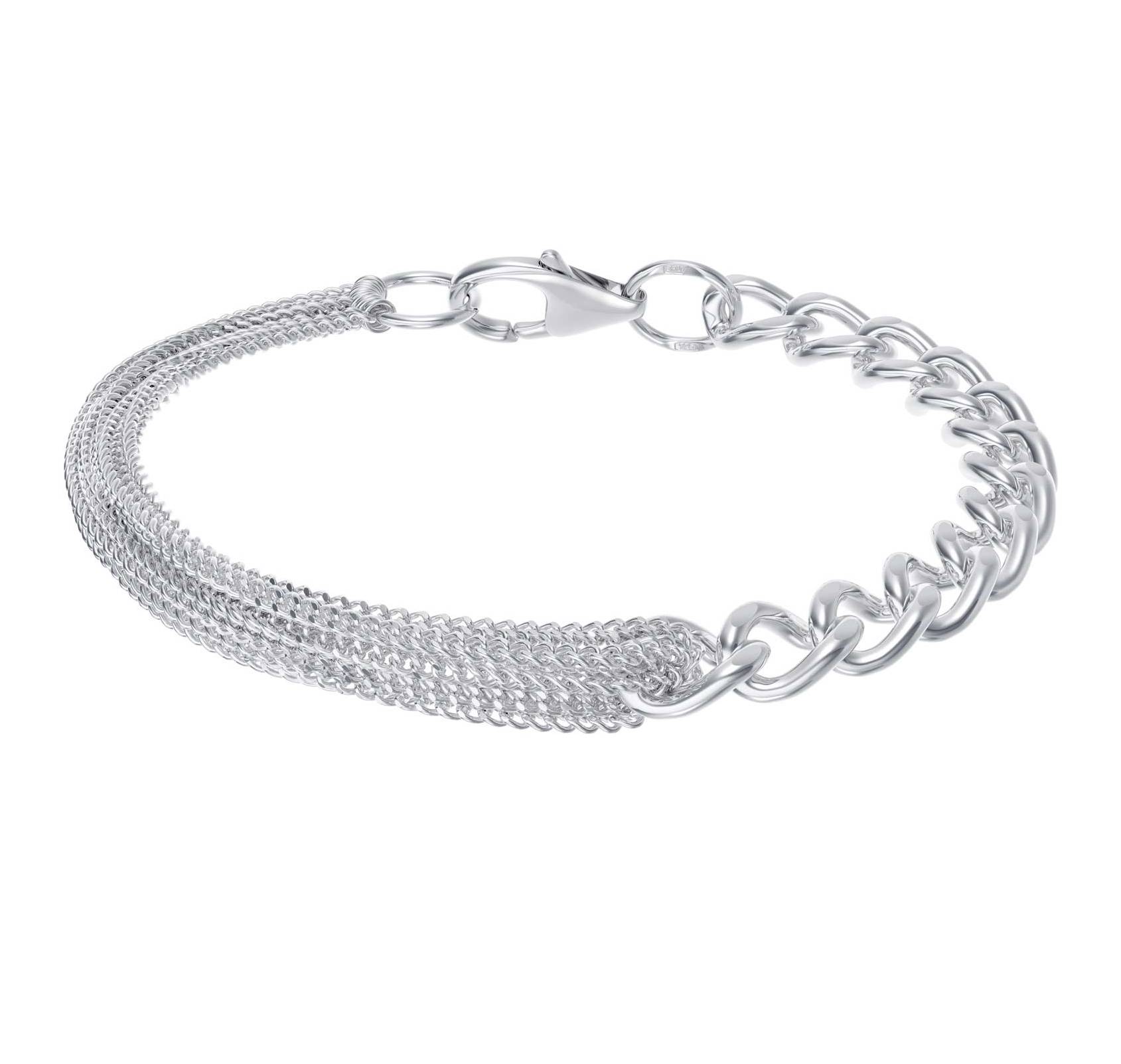 Многослойный цепочный браслет, где сочетание мелкого и крупного мелкого и крупного якорных плетений, выполнен из родированного серебра 925 пробы