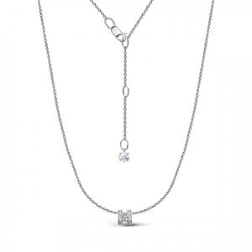 Изящное цепочное колье с подвеской, выполнено в серебре 925 пробы, покрыто родием