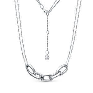 Эффектное колье авангардного дизайна выполнено из серебра 925 пробы на основе "якорного" плетения со вставками в виде объемных звеньев. Изделие покрыто родием, драгоценным металлом платиновой группы, который делает серебро устойчивым к повреждениям и сохраняет искрящийся блеск. Длина регулируется за счет цепочной вставки. Замок карабин - прочный и надежный. Изделие представлено брендом "DEL`TA" коллекция "Chain". Средняя характеристика камней: 1 Фианит. В комплект поставки входит: