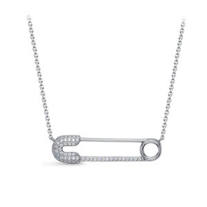 Эффектное колье оригинального дизайна выполнено из серебра 925 пробы и украшено подвеской в виде "булавки" в инкрустации сверкающих фианитов