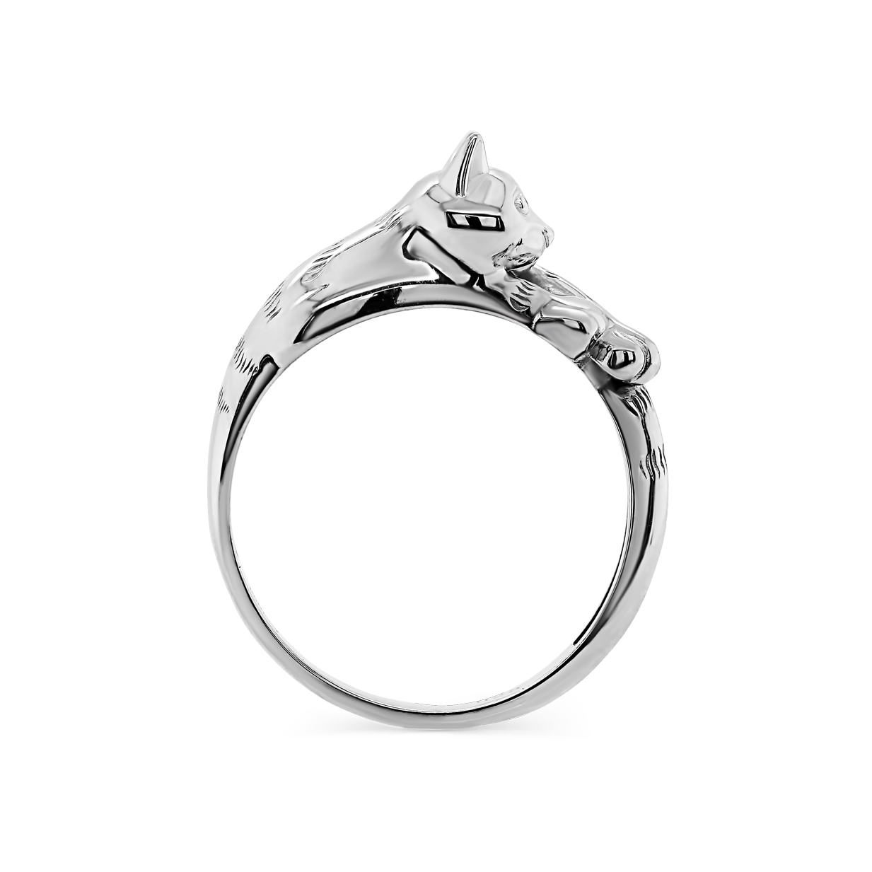 Кольцо в анималистичесом стиле, с изображением котика, выполнено из серебра 925 пробы.