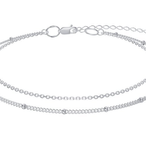 Стильный анклет - двойной браслет на ногу с декоративными вставками, выполнен из серебра 925 пробы