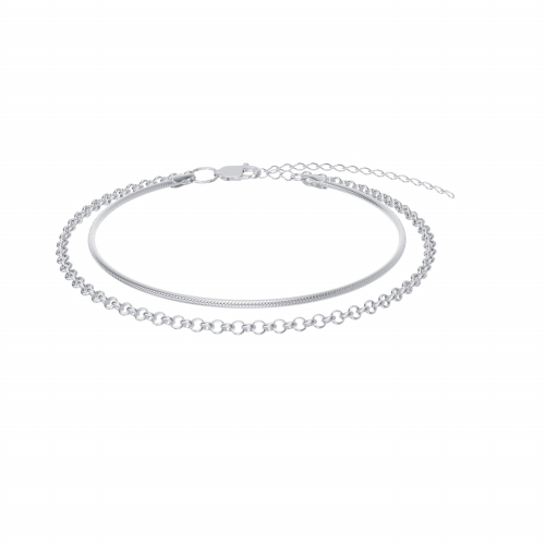 Оригинальный браслет, состоящий из двух цепей: Тонды и Снейка с алмазной гранью, выполнен из родированного серебра 925 пробы