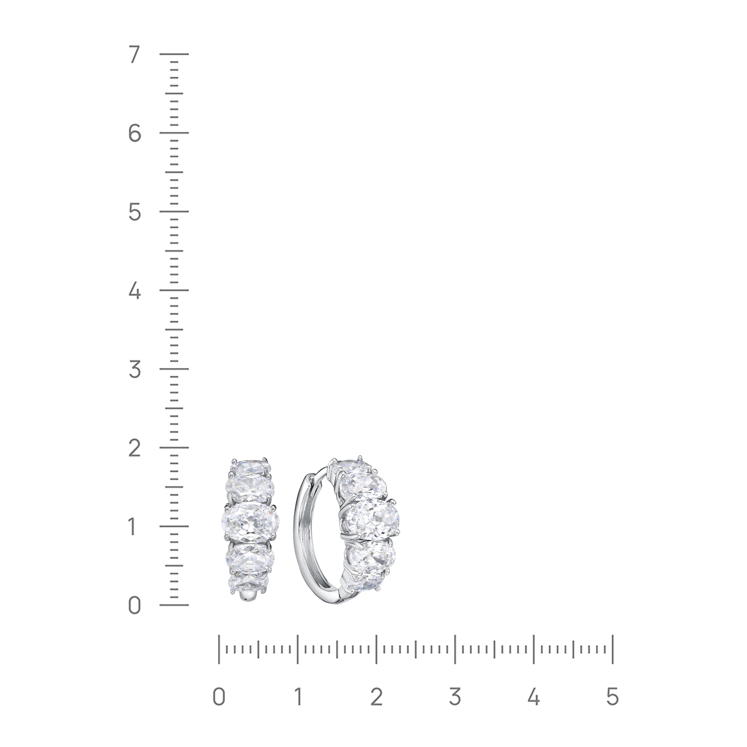 Серьги, украшенные дорожкой фианитов овальной формы огранки, выполнены из серебра 925 пробы