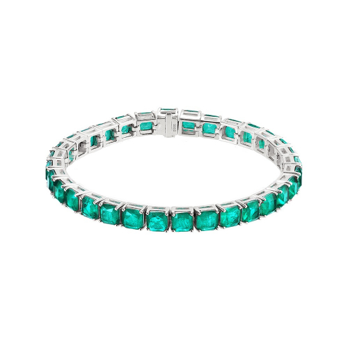 Стильный браслет с оригинальным дизайном с искрящими циркониями зеленого цвета, выполнен в серебре 925 пробы, покрыт родием. Родий - это металл платиновой группы, который защищает украшение от внешних воздействий и долго сохраняет первоначальный внешний вид. Изделие представлено брендом FIDELIS. В комплект поставки входит: