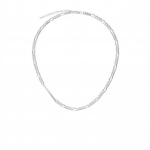 Колье из плетения фигаро 3+1 (d 1,2 мм) с акцентом в виде прямоугольной пластины (4х26 мм) выполнено из серебра 925 пробы