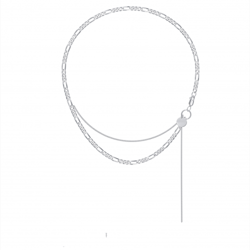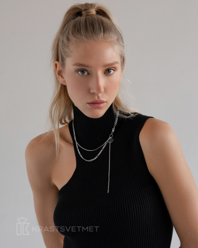Ассиметричное колье с основой из фигаро 3+1 (d 01,2 мм) и гурметы (d 0,5) cо спадающим полотном из гурметы (d 0,5мм) выполнено из серебра 925 пробы