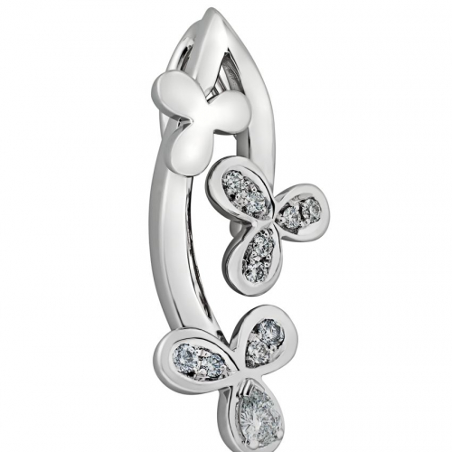 Подвеска выполнена из белого золота 750 пробы и украшена изящными бриллиантами, собранными в нежный цветочный узор