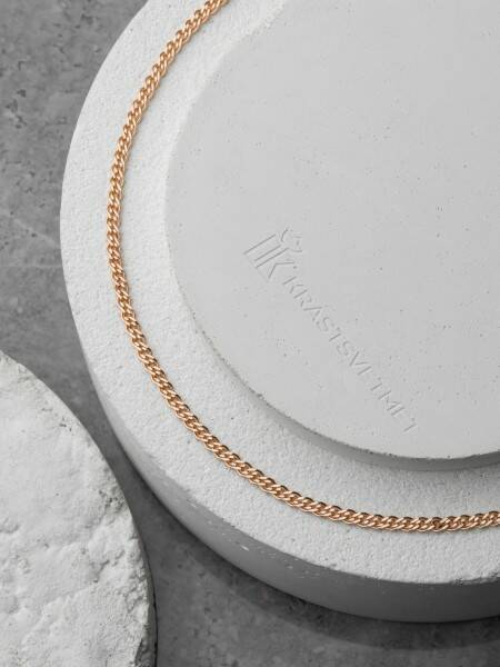 Облегчённая цепь из элегантного красного золота 585 пробы с классическим плетением «Нонна» и стильной отделкой алмазной гранью. Плетение «Нонна» известно своей особой прочностью и привлекательным внешним видом, а алмазная грань придает звеньям яркий блеск и роскошный перелив. Легкая и изящная, эта цепочка прекрасно дополнит образ, подчеркнув вашу индивидуальность и вкус. Подходит как самостоятельное украшение, так и в сочетании с подвеской или кулоном. Диаметр проволки 0,70. Представлено брендом КРАСЦВЕТМЕТ. В комплект поставки входит:
