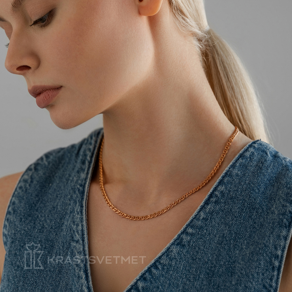 Облегчённая цепь из элегантного красного золота 585 пробы с классическим плетением «Нонна» и стильной отделкой алмазной гранью