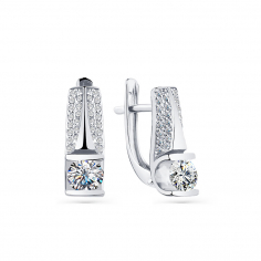 Стильные серьги, украшенные россыпью сверкающих фианитов, выполнены из белого золота 585 пробы