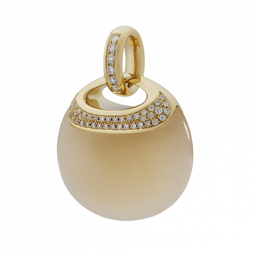 Изящная подвеска из желтого золота 750 пробы очаровывает своим дизайном. В центре композиции — загадочный лунный камень, украшенный дорожкой мерцающими бриллиантов. Представлено брендом АРТ-МОДЕРН. Вставки: 1 лунный камень, весом 23,52 карат, 49 бриллиантов, круглой огранки, общим весом 0,30 карат с характеристиками 3/5А В комплект поставки входит: