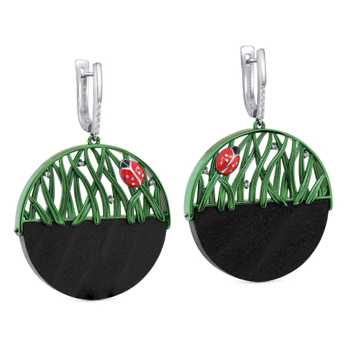 Серьги из серебра 925 пробы украшены деревом, фианитами и покрыты холодной эмалью от российского бренда Kabarovsky