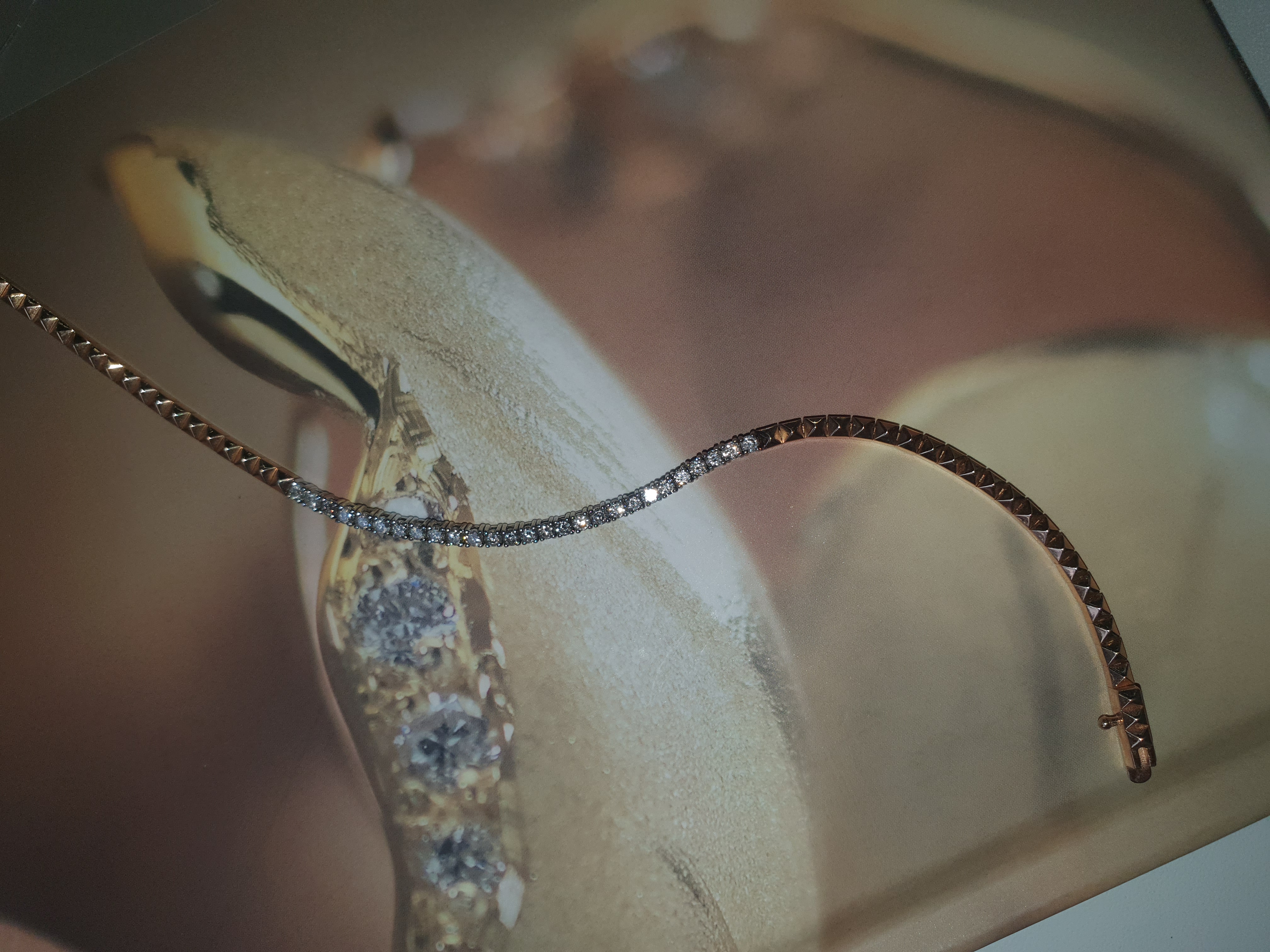 Роскошный браслет, выполнен в сочетании красного и белого золота 585 пробы, с россыпью бриллиантов