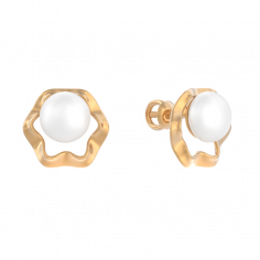 Нежные серьги-пусеты с жемчугом выполнены из красного золота 585 пробы