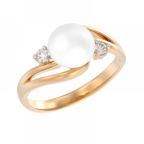 Элегантное кольцо с жемчугом, нежное сияние которого подчёркивают фианиты, выполнено с сочетанием красного и белого золота 585 пробы